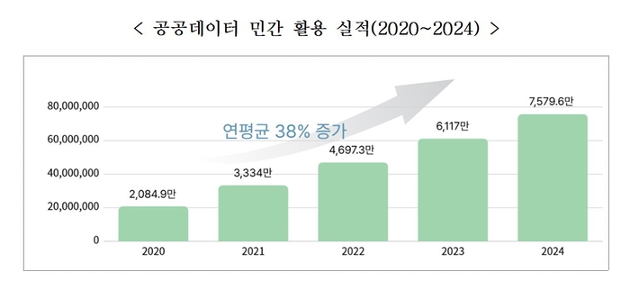 공공데이터의 민간 활용 실적도 눈에 띄게 증가하고 있습니다. 2020년에는 2084만 건이었던 공공데이터 민간 활용 실적이 지난해에는 7579만 건으로 증가했습니다. 이는 3.6배나 확대된 수치입니다.